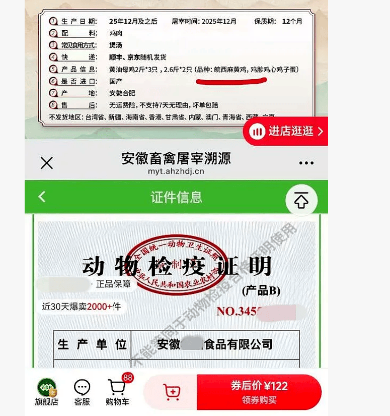 正在社交平台上,不少网友为“取辉同业”,晒出产物以及采办链接截图,称产物未为麻黄鸡。从网友晒出的图片来看,产物包拆没有标注品种消息,采办链接上关于“品种”一栏上写着“无”,正在“能否为特定品种”一栏写着“否”。