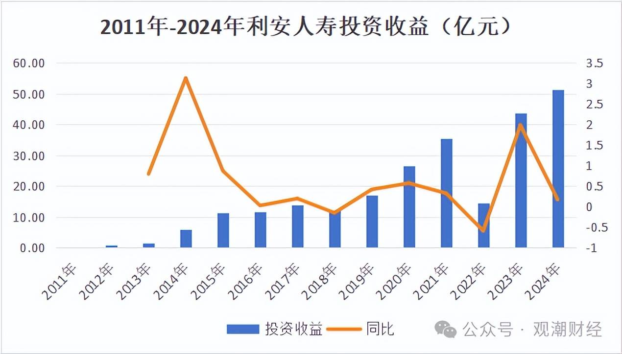 从投资端来看,该公司投资收益全体呈现上升趋向,不外该公司曾正在2022年呈现过一次大幅下滑,由35。45亿元同比下降58。56%至14。69亿元,这或是上述呈现巨亏的主要缘由之一。此后2年,该公司投资收益大幅回升。截至2024岁暮,该公司投资收益为51。42亿元,同比上升17。41%。
