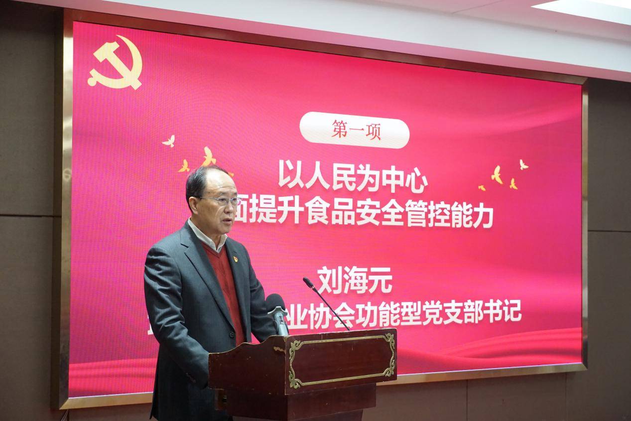研讨会开篇,武汉食物工业协会功能型党支部刘海元以《以人平易近为核心,全面提拔食物平安管控能力》为题开展党课教育。刘海元系统阐述了“以人平易近为核心”成长思惟的理论根底、文化底蕴取汗青实践,强调食物行业必需一直苦守“四个最严”要求,把保障人平易近群众“舌尖上的平安”做为底子。