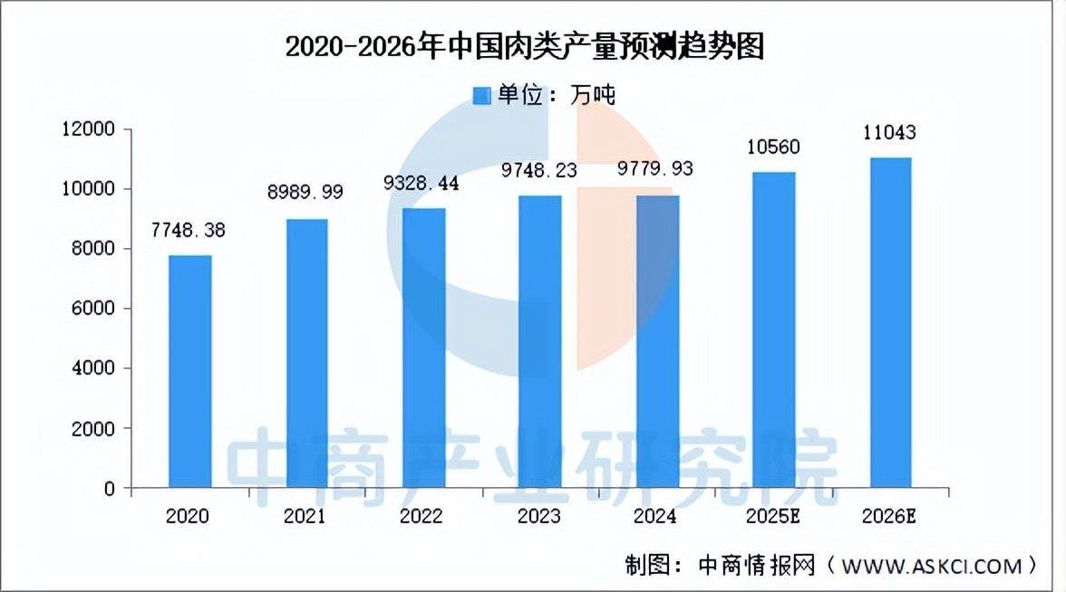 跟着肉成品需求快速增加,国内肉类产量也不竭添加。中商财产研究院发布的《2025-2030年中国农产物财产深度阐发及财产成长风险研究预测演讲》显示,2024年全国肉类产量达9779。93万吨,同比增加0。33%。中商财产研究院阐发师预测,2025年全国肉类产量将达10560万吨,2026年无望跨越11000万吨。
