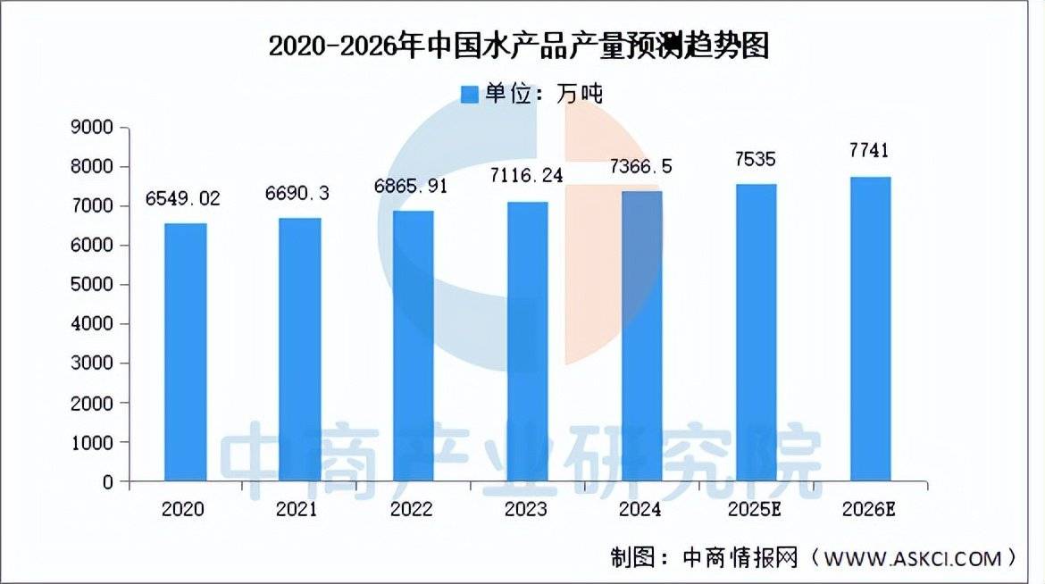 中商财产研究院发布的《2025-2030年中国农产物财产深度阐发及财产成长风险研究预测演讲》显示,2024年全年水产物总产量7366。5万吨,比上年增加3。5%。此中,养殖产量6062万吨,增加4。3%;捕捞产量1305万吨,下降0。1%。中商财产研究院阐发师预测,2025年中国水产物产量将继续增加至7535万吨,2026年将达7741万吨。