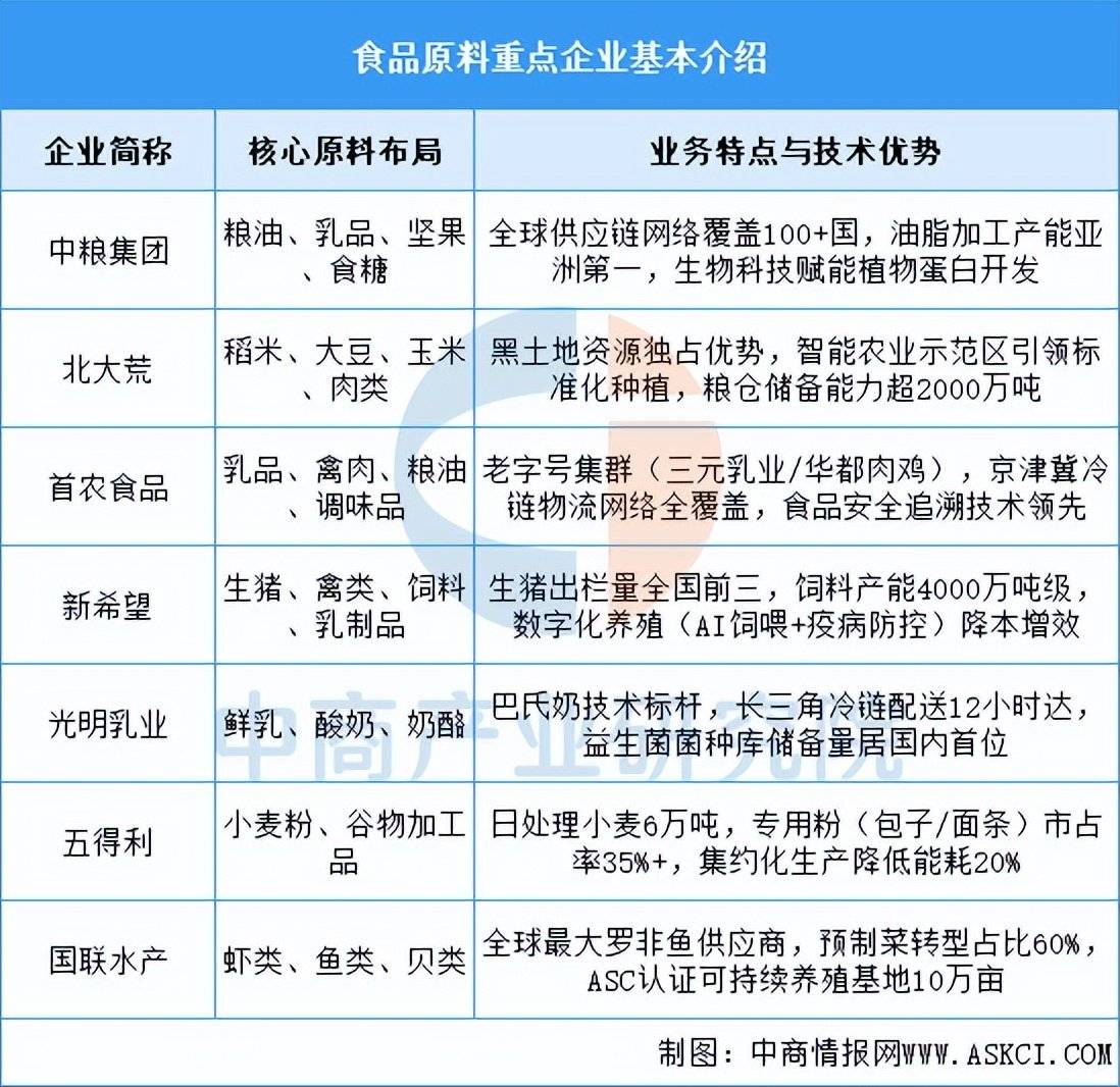 当前食物原料行业正加快向规模化、尺度化、绿色化转型,头部企业通过全财产链整合强化资本节制力,低温乳品)向高附加值升级,供应链韧性扶植成为合作焦点。中粮、北大荒等龙头企业依托全财产链取手艺立异从导根本原料供应,新但愿、聚焦细分范畴高效产能,五得利、国联水产通过专业化出产强化品类壁垒,配合建立中国食物原料平安系统。