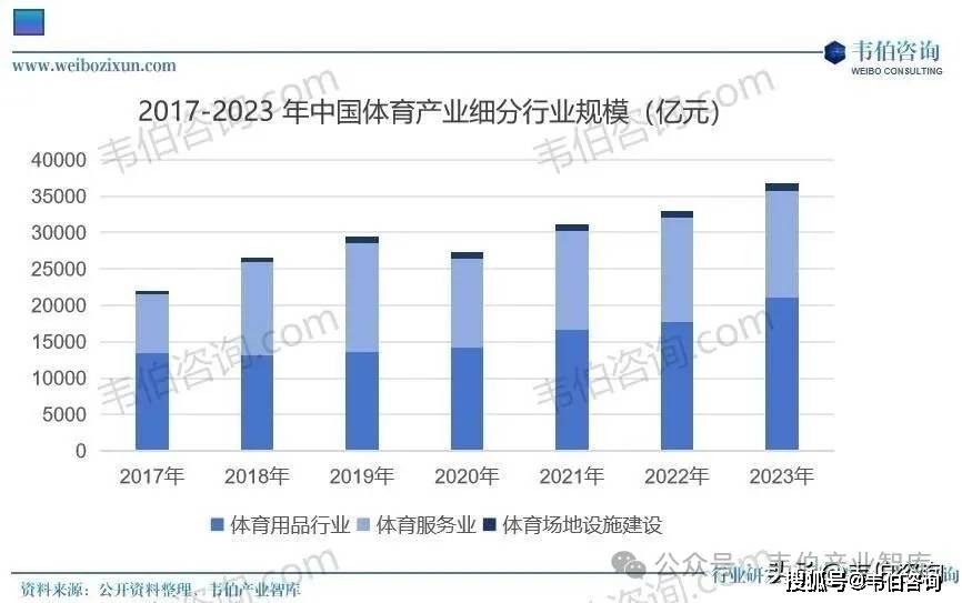 此中体育用操行业为我国体育财产主要构成部门,2023年全国体育财产总产出为36741亿元,同比增加11。31%,添加值为14915亿元,此中体育用品及相关财产制制添加值为3832亿元,占总添加值25。7%。